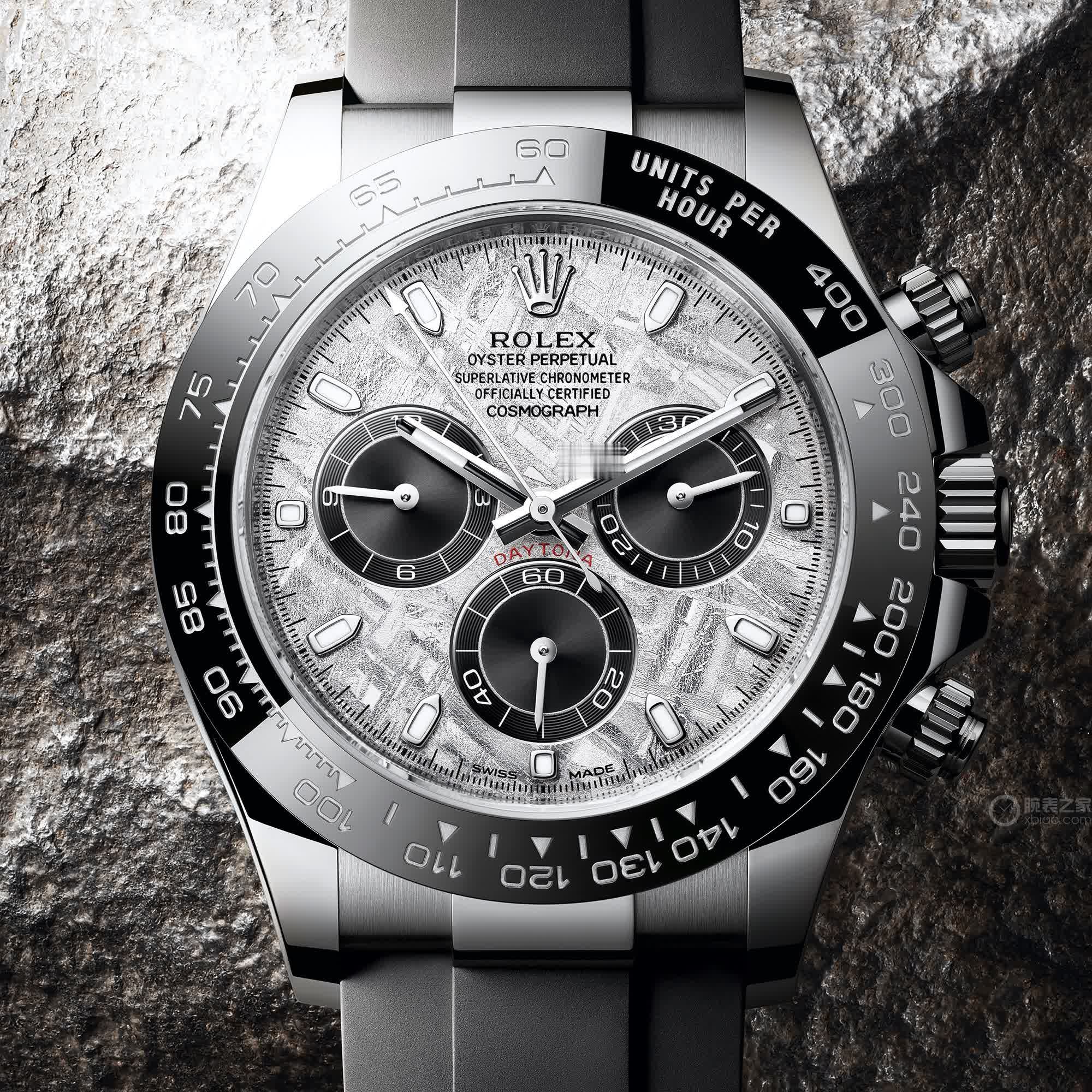 A key part of the model's identity is the bezel moulded with a tachymetric scale for measuring average speeds of up to 400 miles or kilometres per hour. Blending of high technology with sleek aesthetics, the black bezel is reminiscent of the 1965 model that was fitted with a black Plexiglas bezel insert.