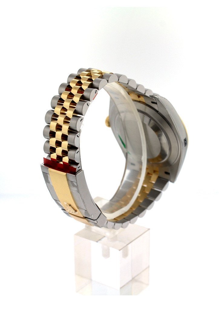 Stainless steel and 18k yellow gold case with a stainless steel and 18k yellow gold Rolex Jubliee?bracelet. Fixed - fluted 18k yellow gold bezel. Black dial with yellow gold-tone hands and index hour markers. Minute markers around the outer rim. Dial Type: Analog. Date display at the 3 o'clock position. Rolex Calibre 3235 automatic movement with about 70 hours of power reserve. Scratch resistant sapphire crystal. Screw down crown. Solid case back. Case size: 41 mm. Round case shape. Oysterlock clasp. Water resistant at 100 meters / 330 feet. Functions: date, hour, minute, second. Luxury watch style. Watch label: Swiss Made. Rolex Datejust 41 Black Dial Steel and 18K Yellow Gold Oyster Men's Watch.?126333