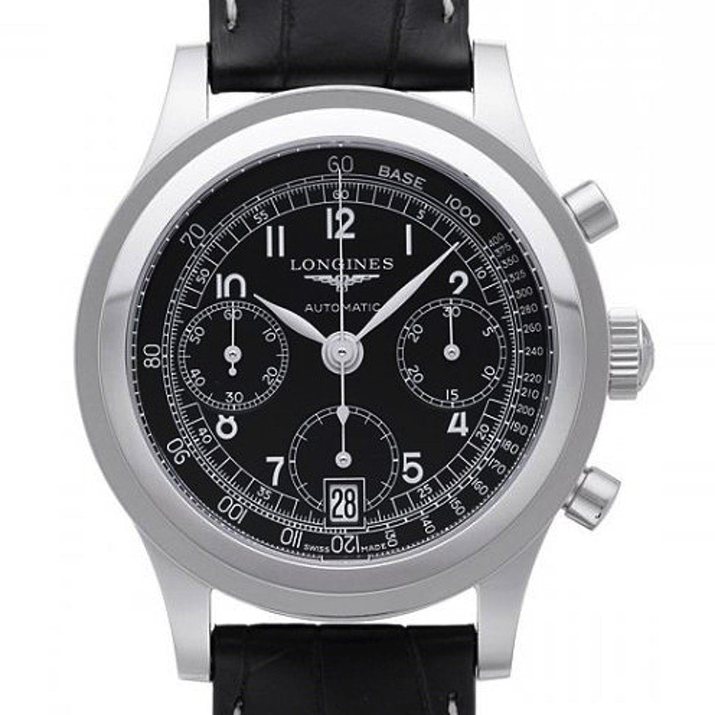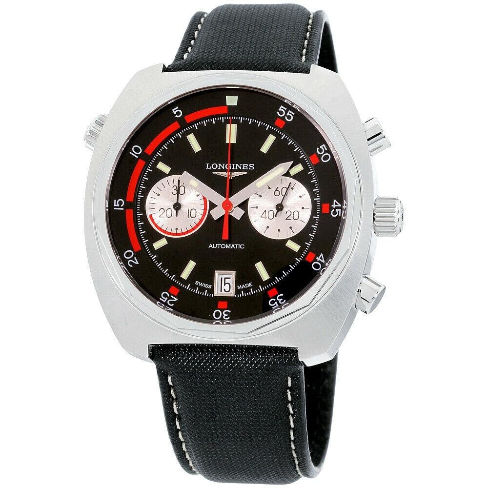 Longines Men's L2.768.4.53.2 Heritage Chronograph Black Leather Watch