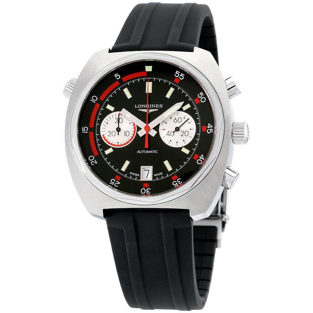 Longines Men's L2.768.4.13.2 Heritage Chronograph Black Leather Watch