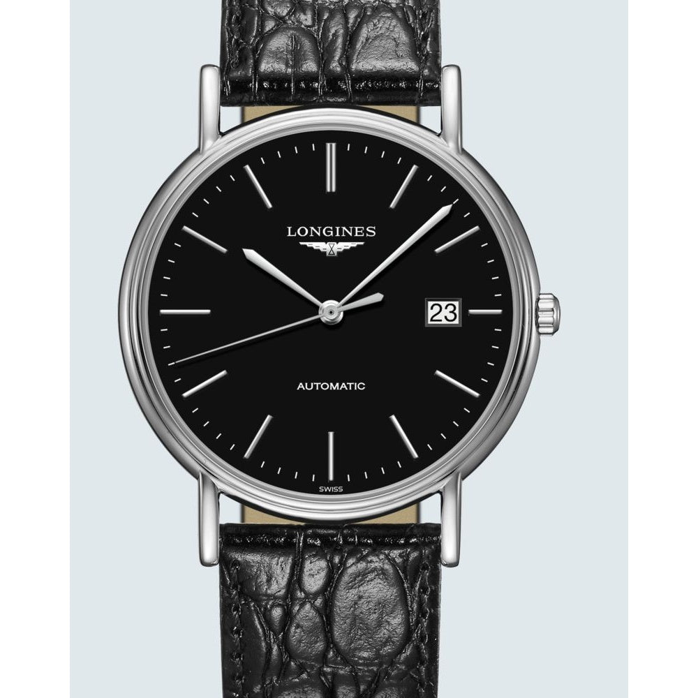Longines Men's L4.921.4.52.2 Presence Black Leather Watch