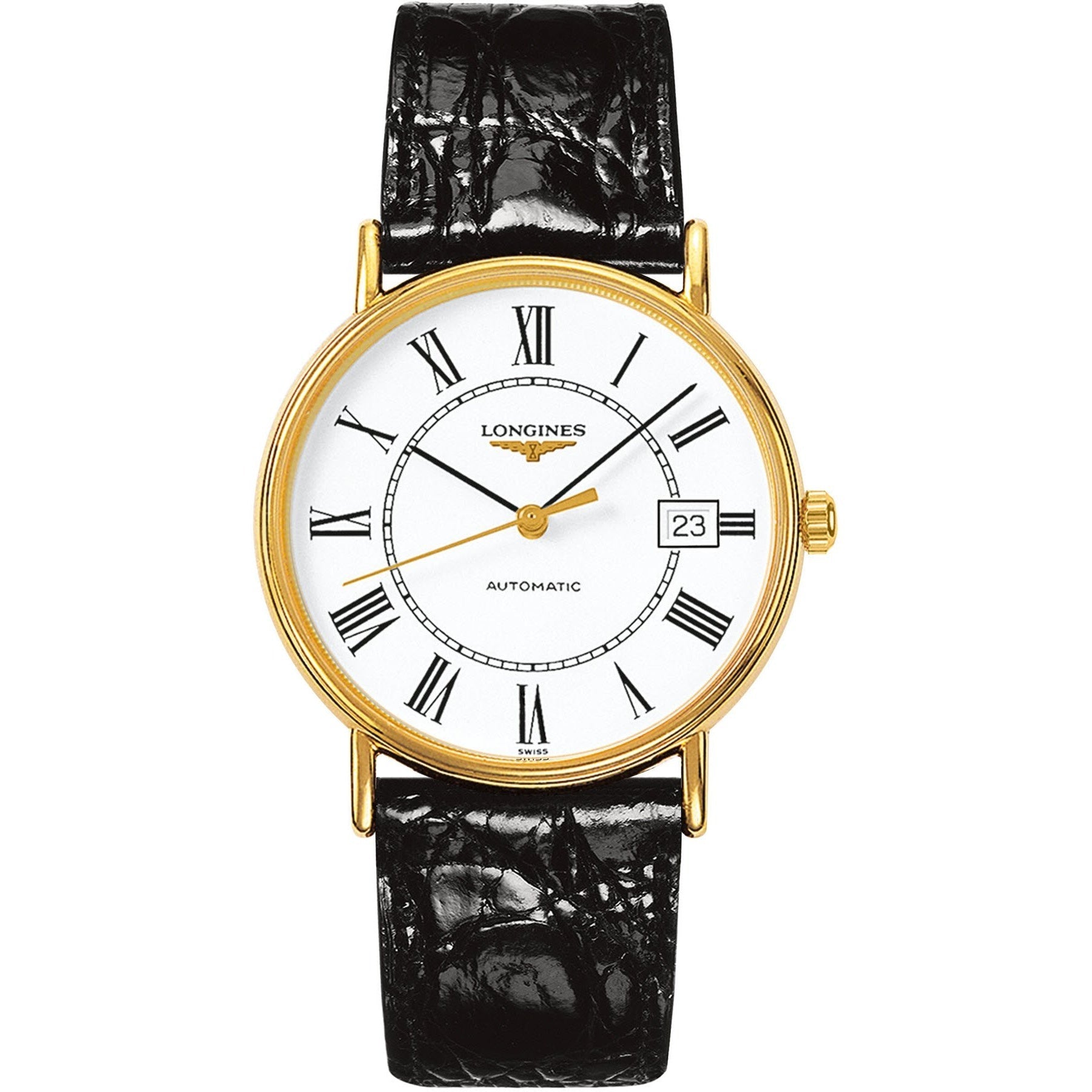 Longines Men's L4.790.4.11.2 Presence Black Leather Watch
