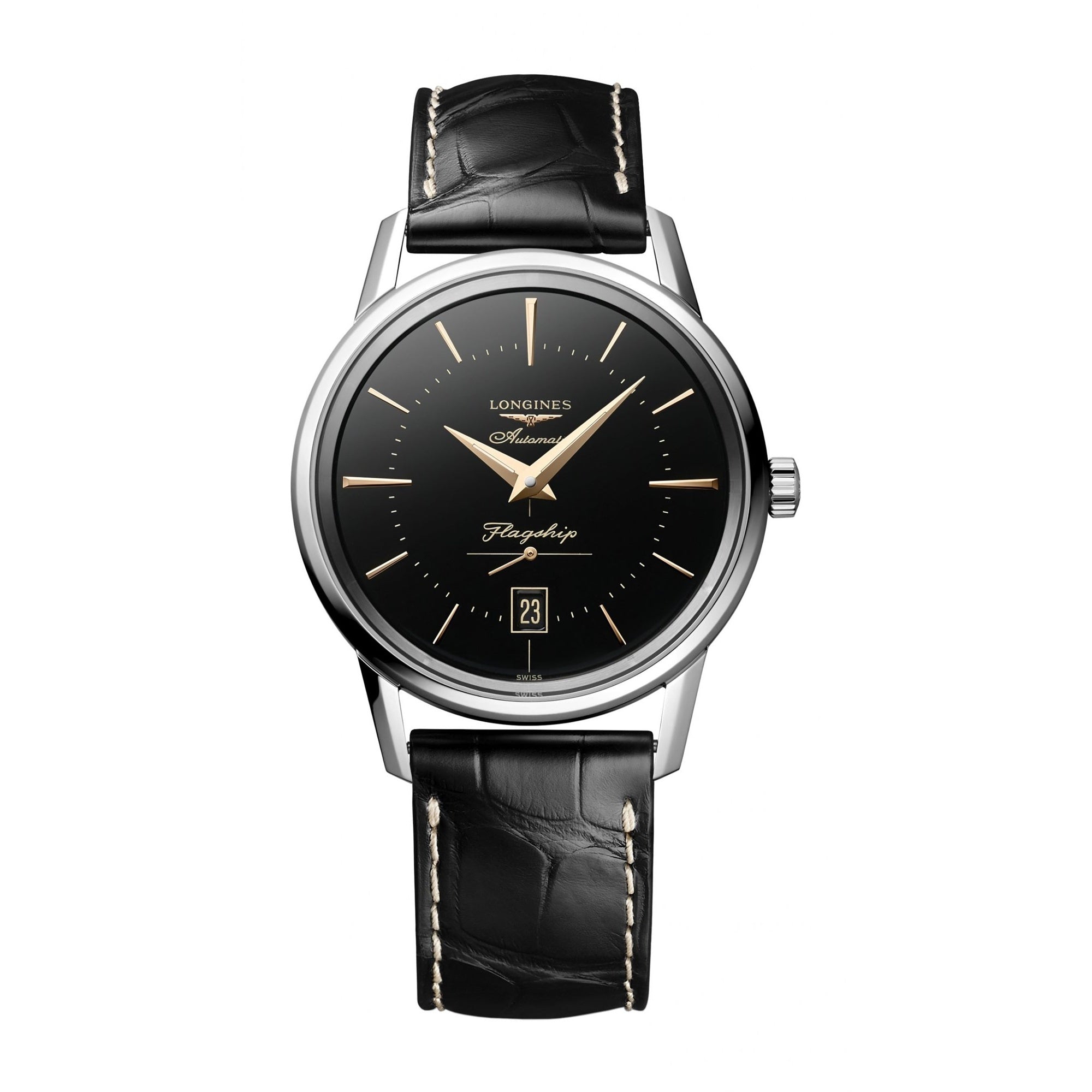 Longines Men's L4.795.4.58.0 Flagship Black Leather Watch