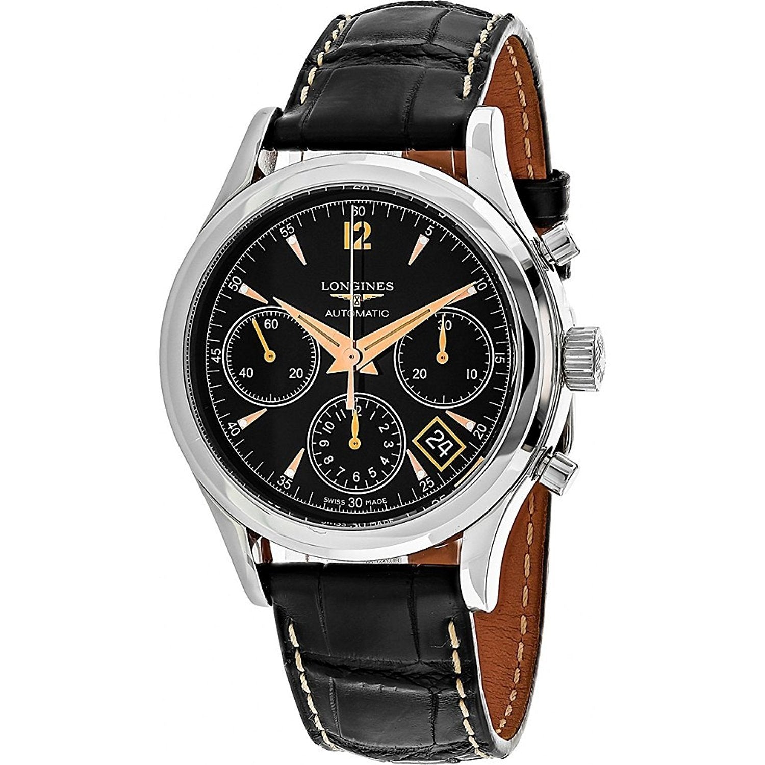 Longines Men's L27504560 Flagship Heritage Chronograph Automatic Black Leather Watch