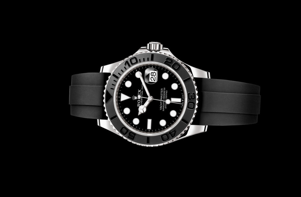 The Yacht-Master?s bidirectional rotatable 60-minute graduated bezel is made of precious materials. The raised polished numerals and graduations stand out clearly against a matt, sand-blasted background. This functional bezel ? which allows the wearer to calculate, for example, the sailing time between two buoys ? is also a key component in the model?s distinctive visual identity.