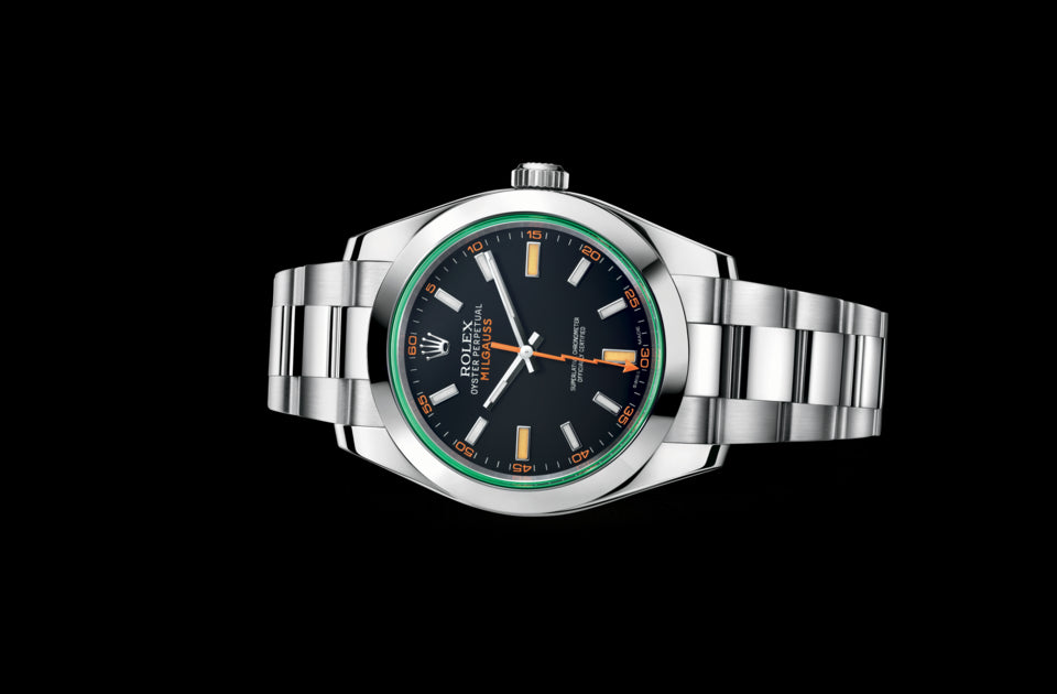 The Oyster Perpetual Milgauss is a pioneering antimagnetic watch designed to meet the demands of engineers and scientists. Created in 1956, it can withstand magnetic fields of up to 1,000 gauss. Hence its name, ?mille?, which is French for one thousand. The first watch of its kind, the Milgauss highlights the historic links between Rolex and scientific research.