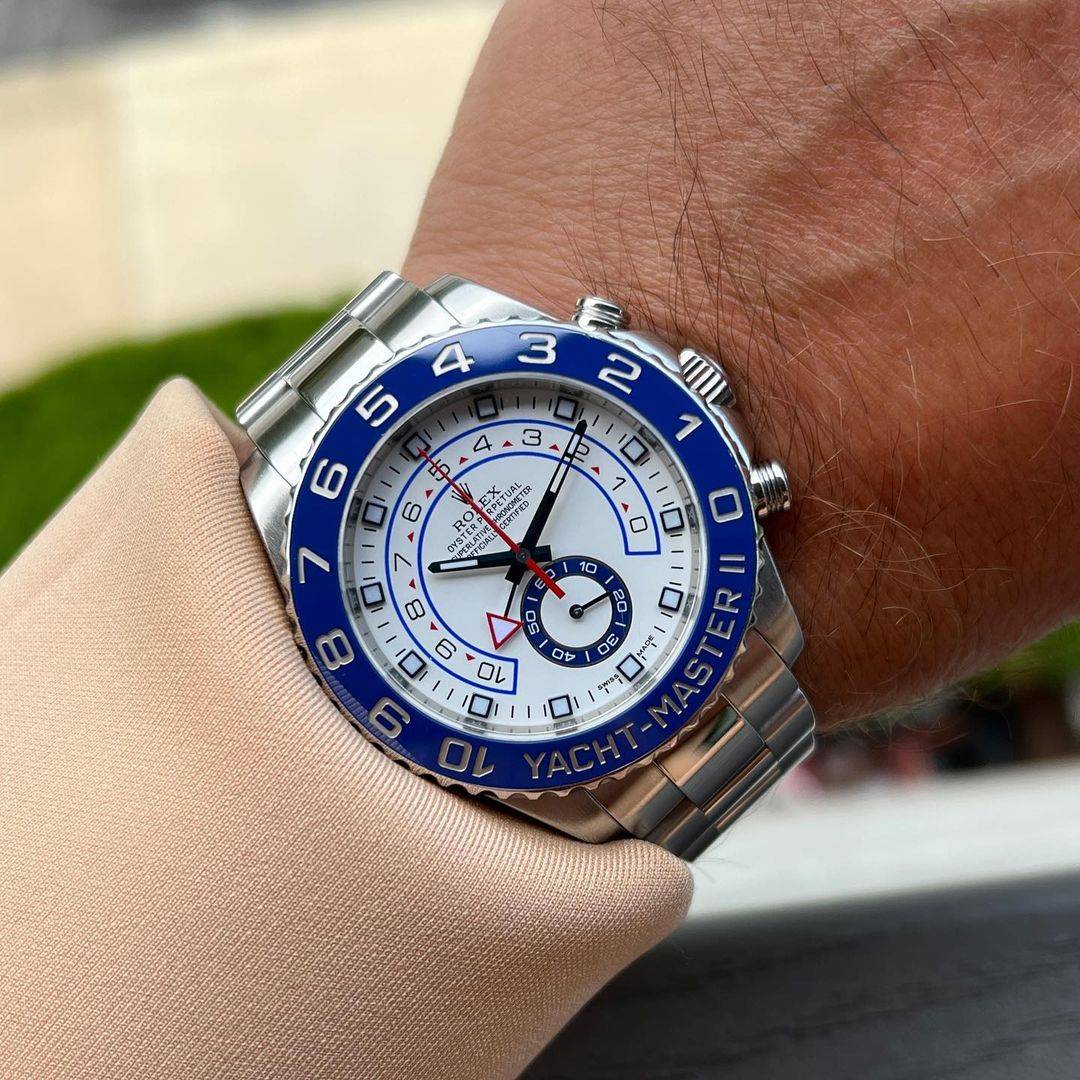 The only chronograph in the world with a mechanical memory, the Yacht-Master II with its bezel acting as a programmable countdown, is an essential tool for skippers to gauge their best course of action.
