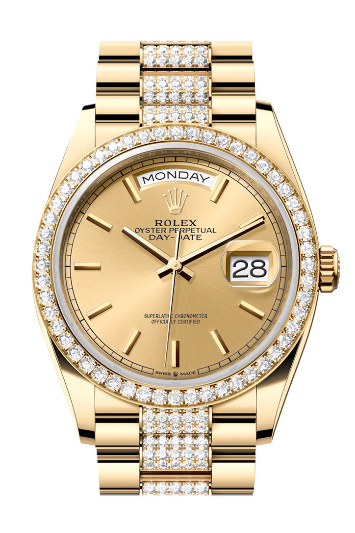 ROLEX Day-Date 36 Diamond-Paved Diamond Dial 18K Yellow Gold Watch 128238