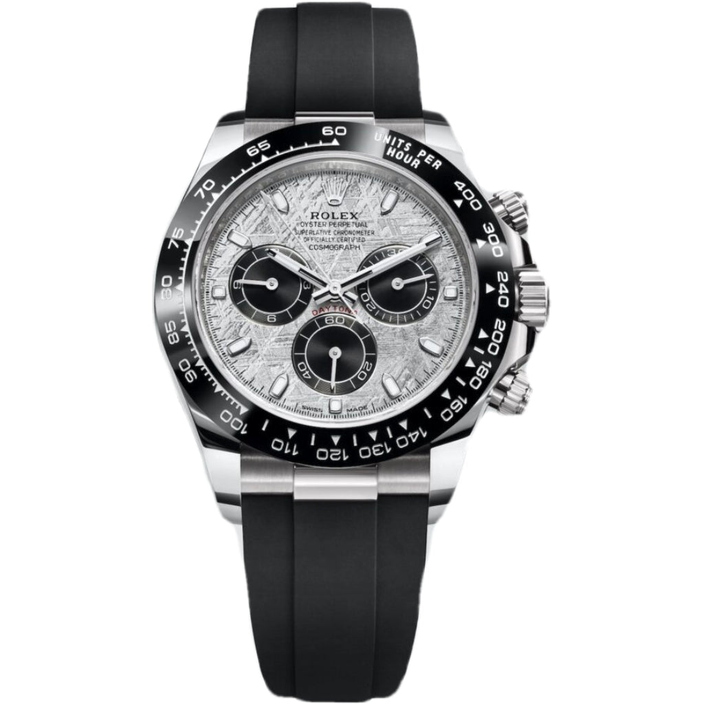 A key part of the model's identity is the bezel moulded with a tachymetric scale for measuring average speeds of up to 400 miles or kilometres per hour. Blending of high technology with sleek aesthetics, the black bezel is reminiscent of the 1965 model that was fitted with a black Plexiglas bezel insert.