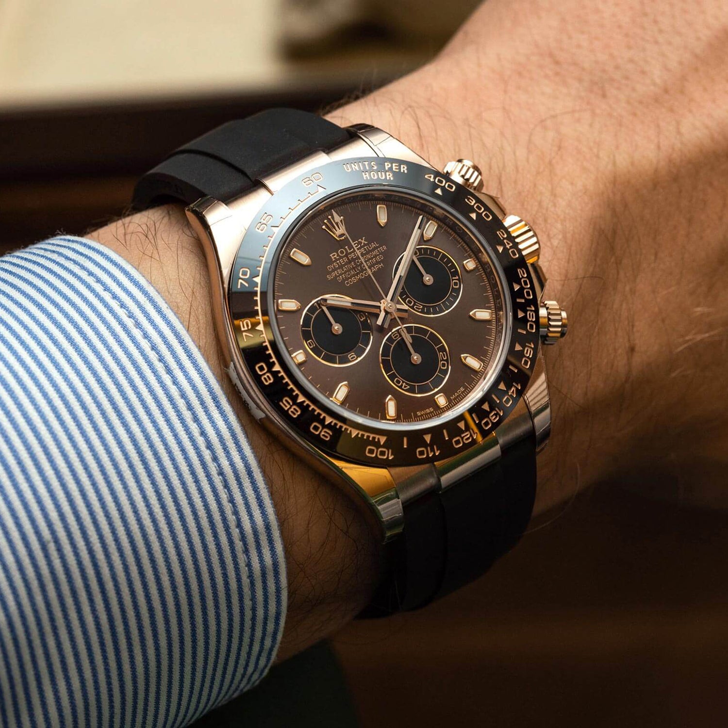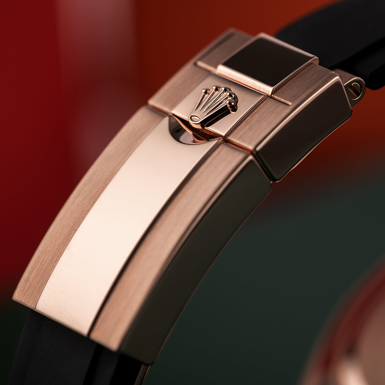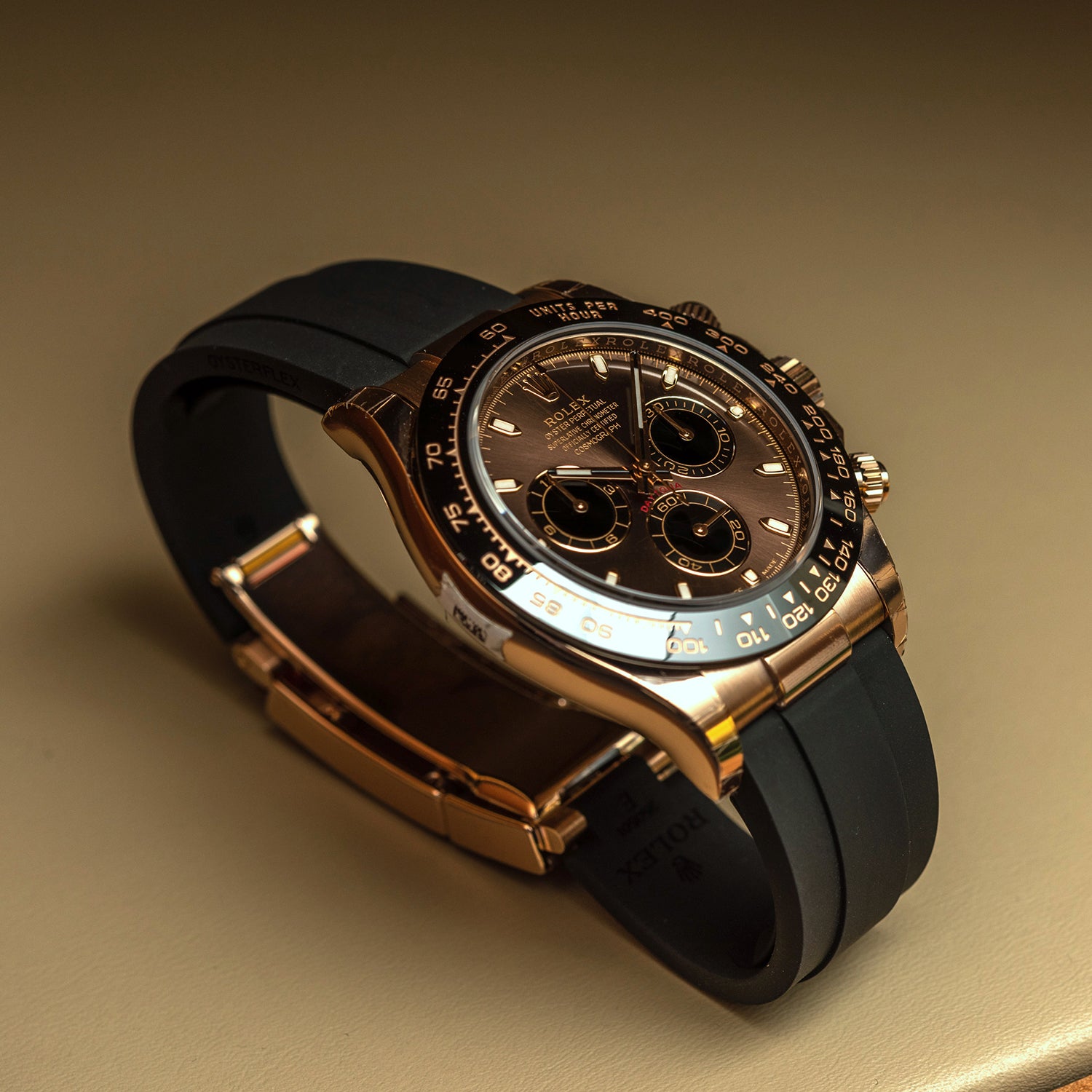 Fitted to the 'best in class' waterproof rubber Oysterflex bracelet, this immensely sought-after precious metal Daytona is brand new.