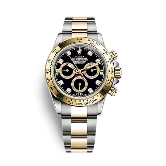 Rolex Cosmograph Daytona Black Diamond Yellow Gold Oysterflex Strap Mens Watch 116518LN 116518