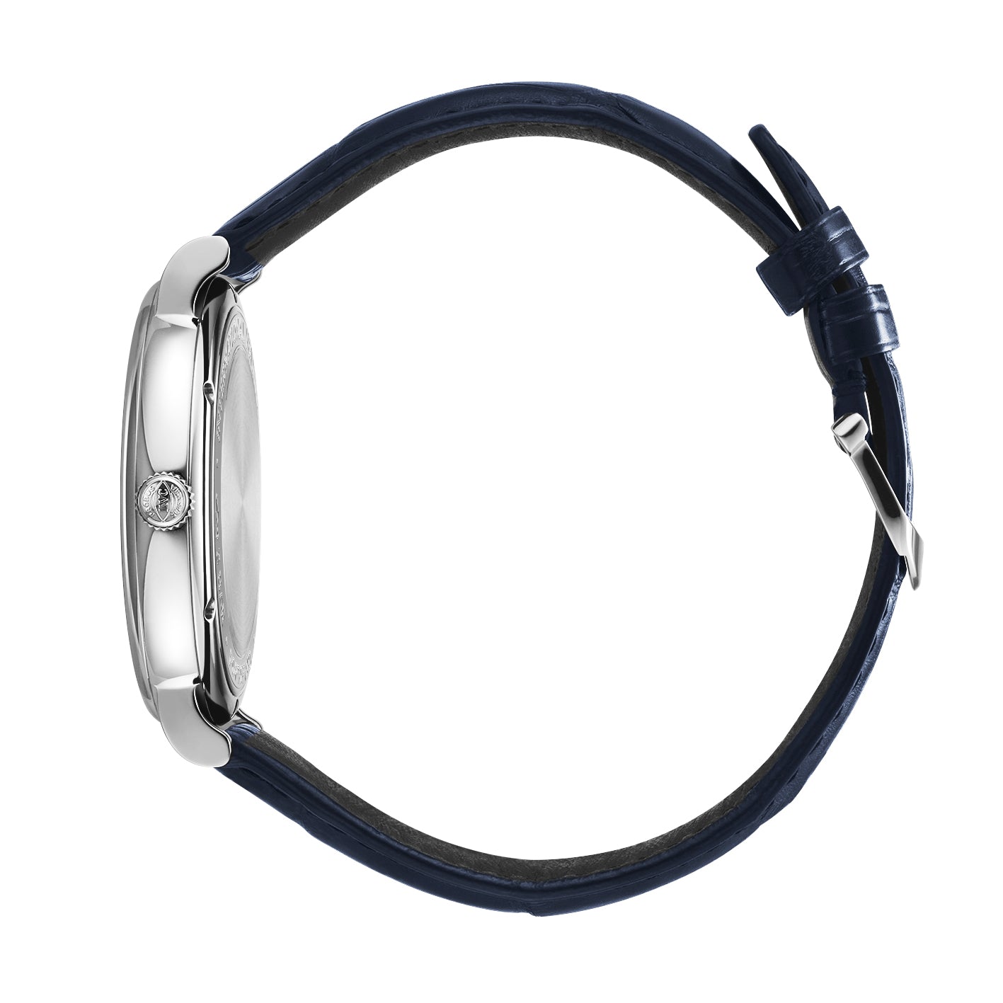 Highlights: The Portofino Automatic 40 (IW356527) displays all the signature Portofino design cues such as a classic round case with straight lugs, appliquéd indices and Roman numerals, and slender feuille hands. This new version in a 40mm stainless steel case enchants with a silver-plated dial and blue hands and appliqués, which harmonize perfectly with the blue strap made of fine alligator leather. This timelessly elegant automatic watch also features a date display at 3 o'clock.