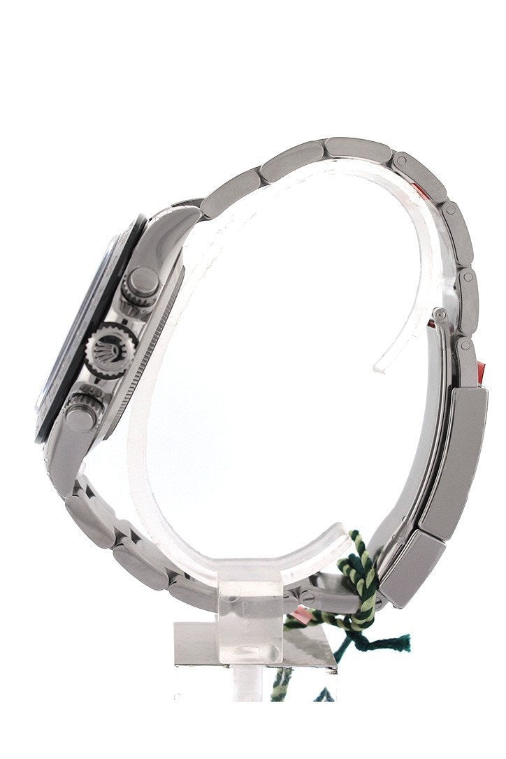 Stainless steel case with a stainless steel Oyster bracelet. Fixed bezel. White dial with silver-tone hands and index hour markers. Minute markers around the outer rim. Dial Type: Analog. Chronograph - sub-dials displaying: three - 60 second, 30 minute and 12 hour.Calibre 4130 automatic movement with about 72 hours of power reserve. Scratch resistant sapphire crystal. Screw down crown. Solid case back. Case size: 40 mm. Round case shape. Oysterlock clasp. Water resistant at 100 meters / 330 feet. Functions: chronograph, hour, minute, second. Luxury watch style. Watch label: Swiss Made. Rolex Cosmograph Daytona White Dial Stainless Steel Oyster Mens Watch 116500LN 116500