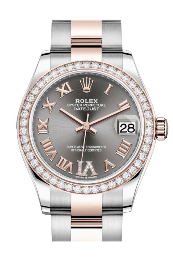 Rolex Datejust 31 Dark Rhodium Dial Diamond Bezel Rose Gold Two Tone Watch 278381RBR 278381